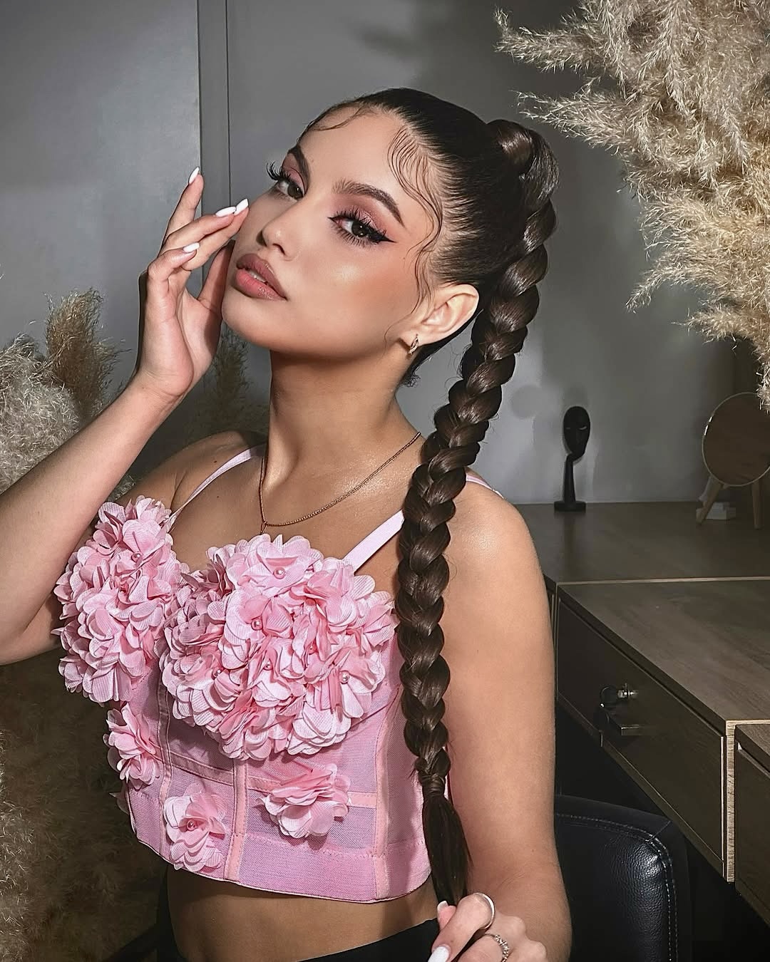 This double-bun look and silky straight hair with perfectly combed Latina edges is a full blown baddie move. The balance of playful and polished makes it perfect for daytime hangs as well as content shoots. It is an amazing choice to use for black women and it also looks perfect on natural hair that has been flat-ironed. The baby hair detailing is what makes this look really pop; it is sharp, artistic, and clearly thought out. Add some hoops and a cutout top, and you are giving the full IG energy with a dash of confidence.