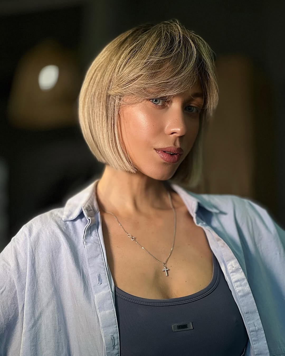 This shorter bob has that sharp, modern vibe that turns heads without trying too hard. The addition of soft bangs gives it a playful twist, while the layered cut keeps it looking light and airy instead of too severe. It’s chic, flattering, and has that Parisian-inspired edge that feels both timeless and fashion-forward—perfect for anyone craving a bold change.
