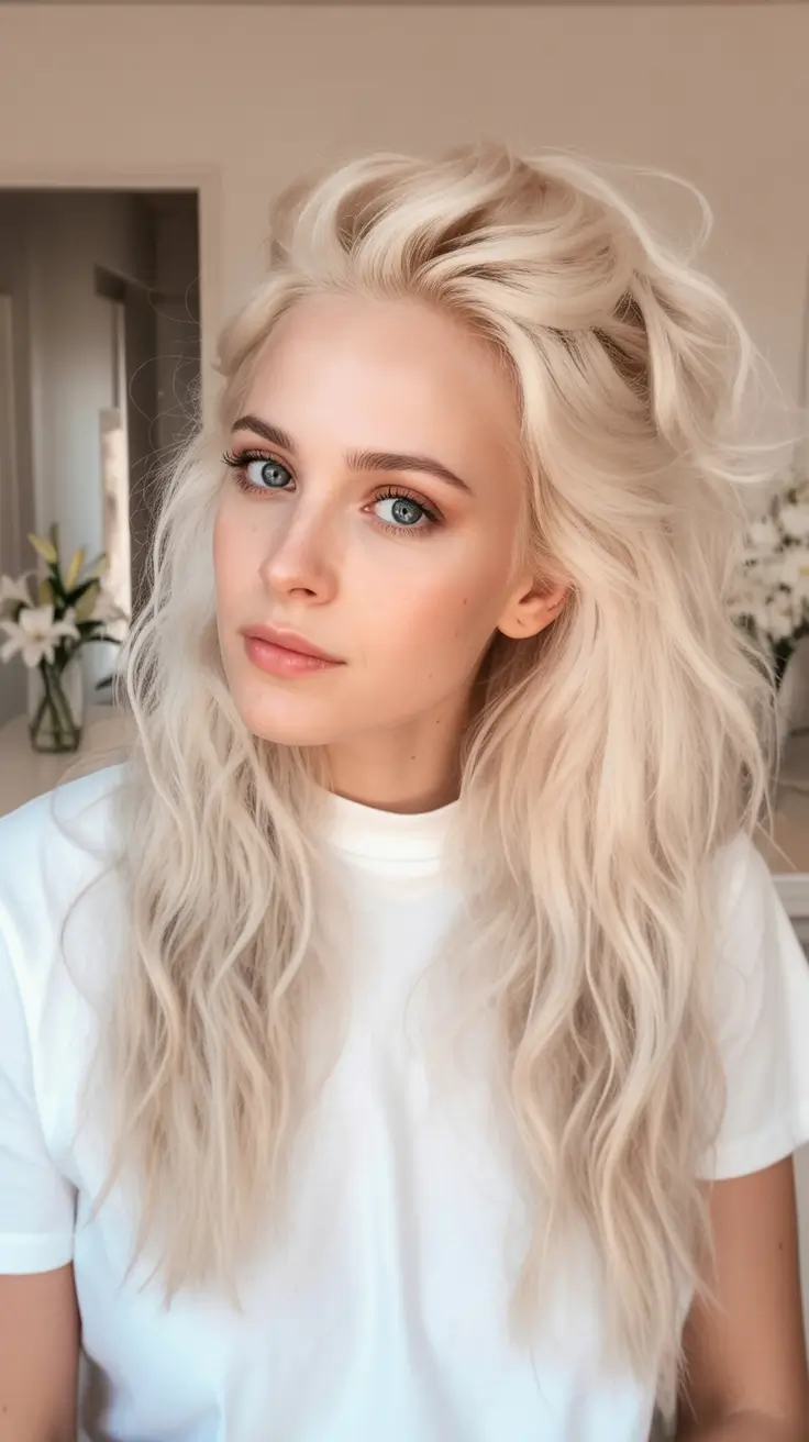 Flowy and ethereal cool-tone platinum which turns into airy curls that are lightweight at the crown and then melt into airy curves like Sunday morning in a white tee. The trick is being less hard: nothing crunchy, just tossily and with a bit of root volume. On Blonde lengths the impact is polished, modern and so 2025.