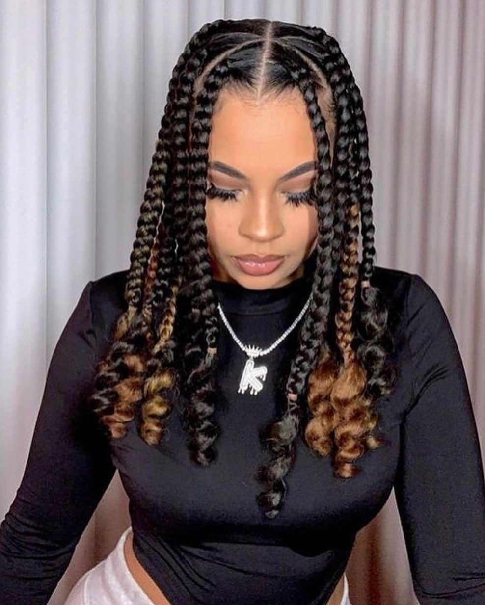 This style is particularly flattering for women in love with experimenting with color that does not require permanent dye. The natural red braids bring out the character, and the curly hair ends bring movement and softness. It is ideal for short hair that is growing out as it promotes growth while protecting the hair. Wear it for black women who want to be trendy and fashion forward – it’s the type of haircut that feels exciting every time you look at yourself in the mirror.