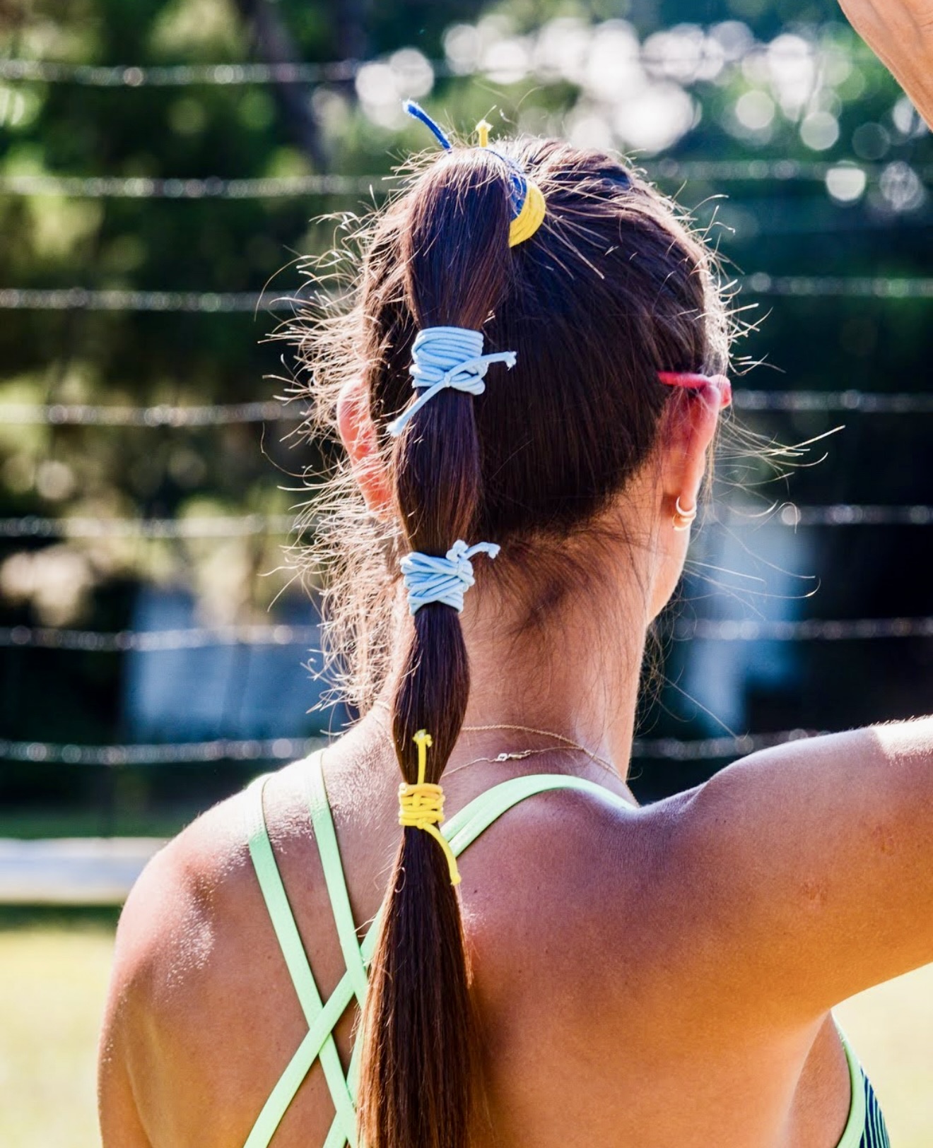 7. Color Pop Bubble Ponytail